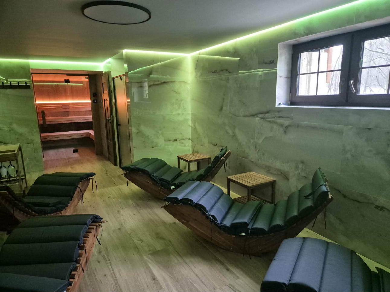 Součástí chalupy je moderní privátní wellness určené pro pohodlný relax až pro větší skupiny.